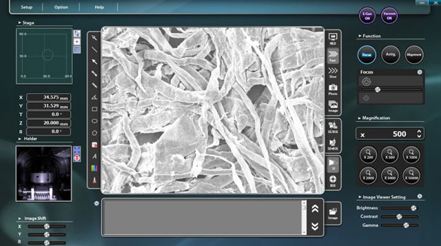 的CX-200plusSEM提供了一个标准的5轴工作台,自动“点击和移动”XYZRT样品定位,最终在灵活性。5个方向的控制通过软件界面完成,并利用样品尺寸,以防止与内部室附件的碰撞。